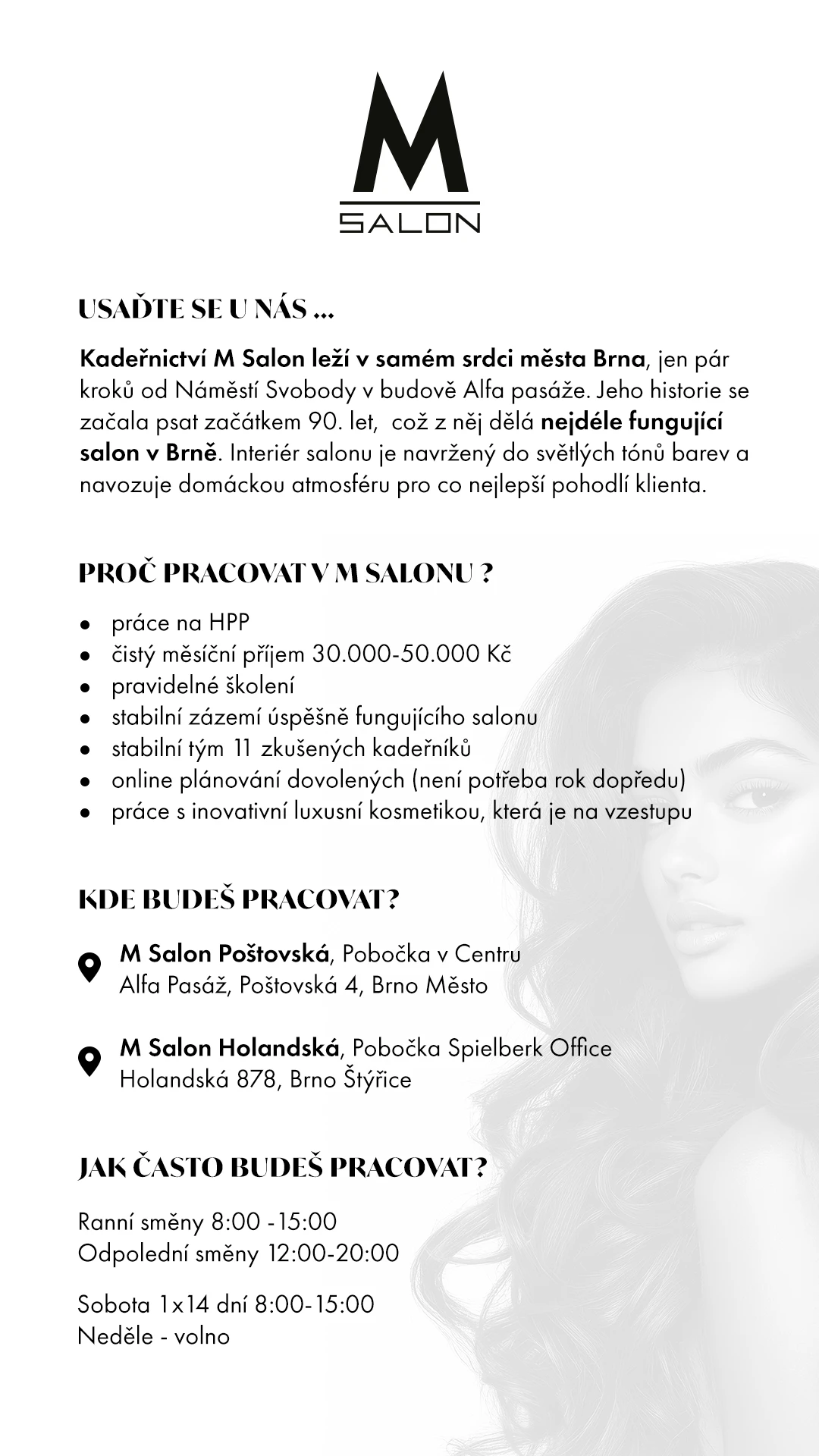 Hledáš práci v prestižním kadeřnickém salonu, který pracuje s profesionální vlasovou kosmetikou?